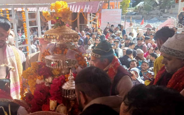 आर्मी बैंड व ढोल दमांऊ की अगुवाई में आज गंगा जी की विग्रह डोली आज मुखबा से...